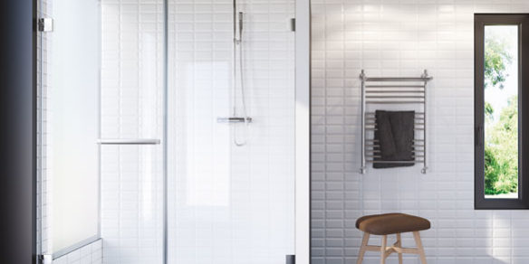 Las mamparas de ducha abatibles son más fáciles de limpiar y permiten un diseño más limpio y minimalista. Otra posibilidad son las mamparas fijas, que simplifican el diseño y ocupan espacio ni restan luz.